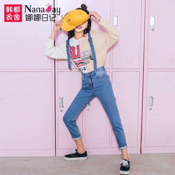 女士青年蓝色欧美中腰时尚哈伦牛仔裤WGA4731【nibbuns 2016春装新品】 蓝色 S