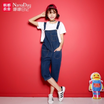 【娜娜日记】蓝色宽松背带裤牛仔裤女NL6336嬛0818 蓝色 XS